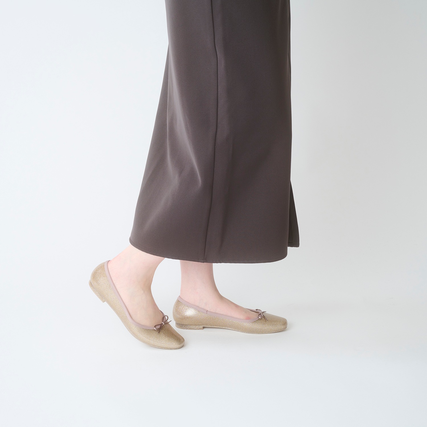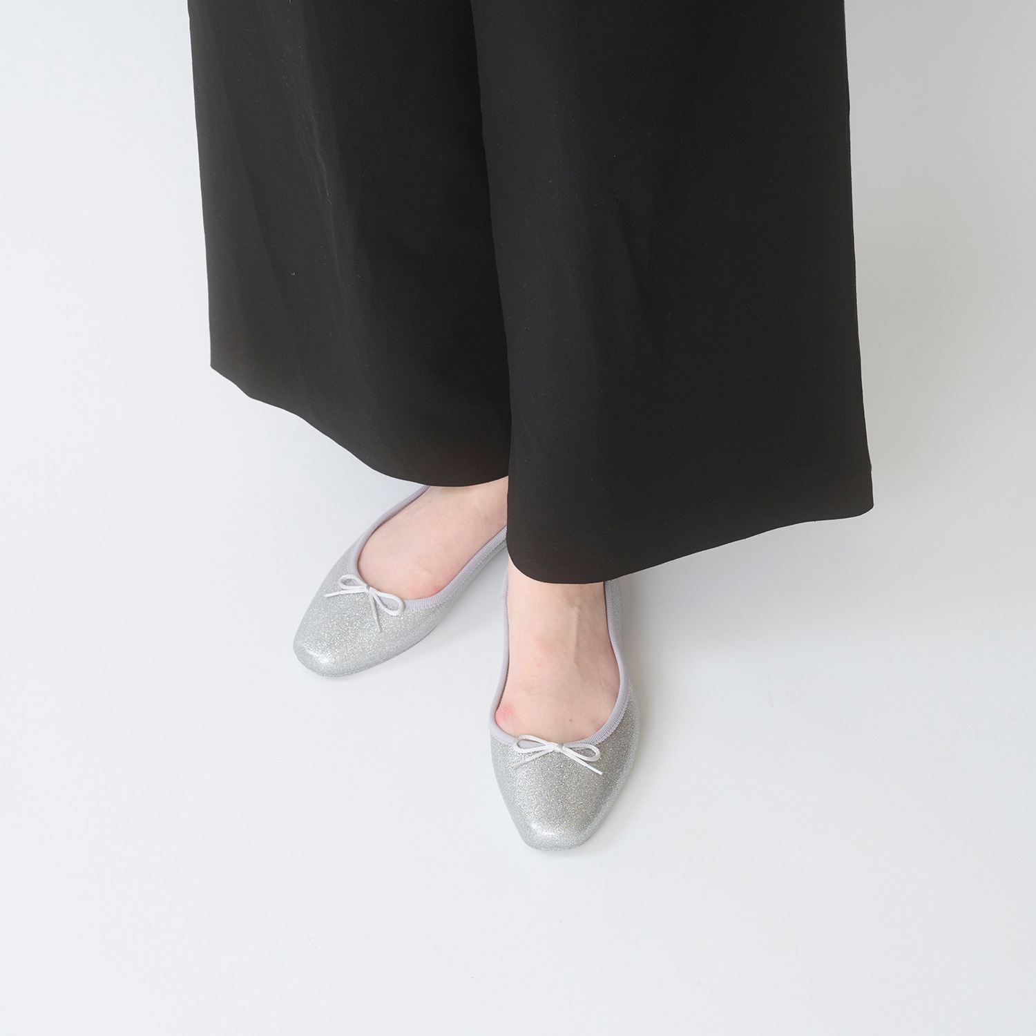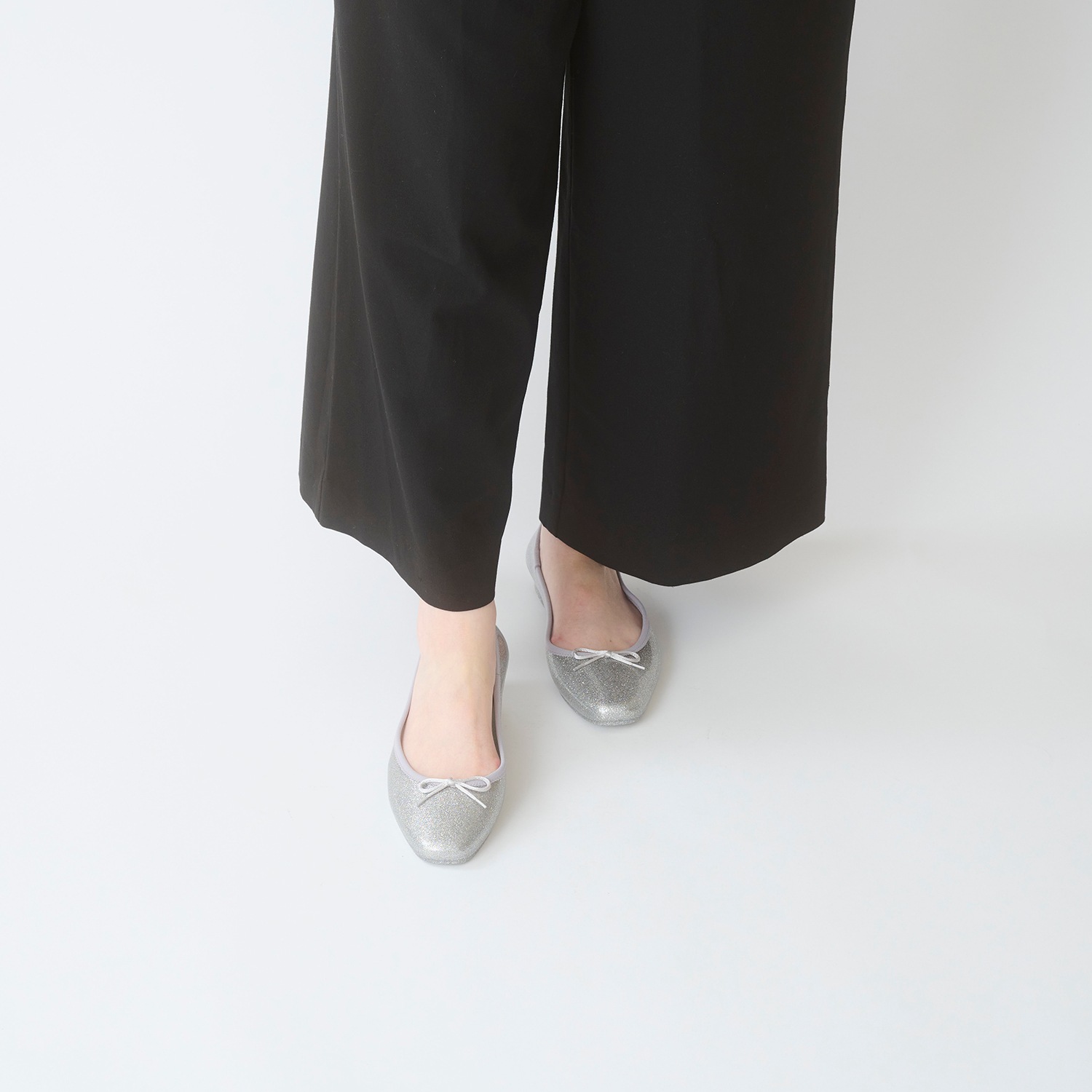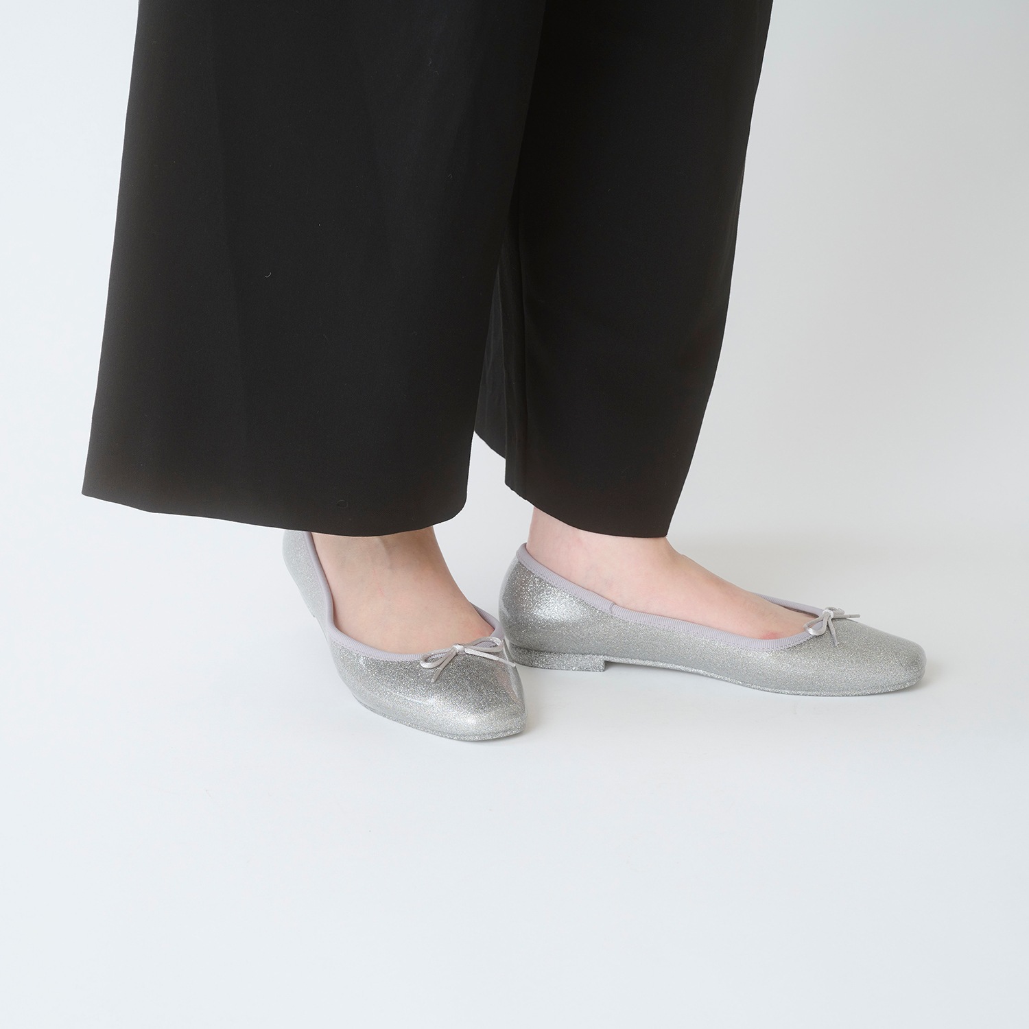 細かい粒子のグリッターをぎっしりと詰め込み、足元に繊細な輝きを纏える一足。グリッターは素材内部に閉じ込めており、剥がれ落ちる心配もありません。