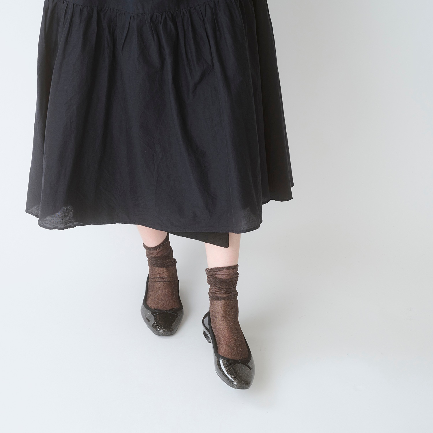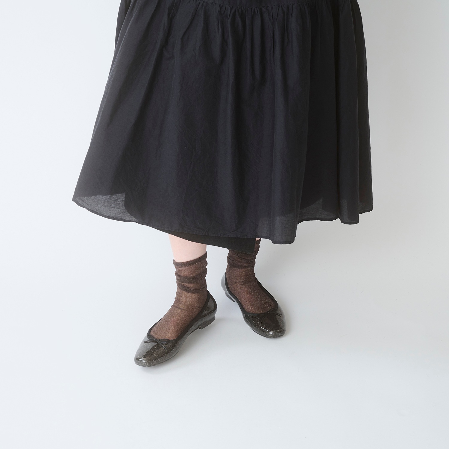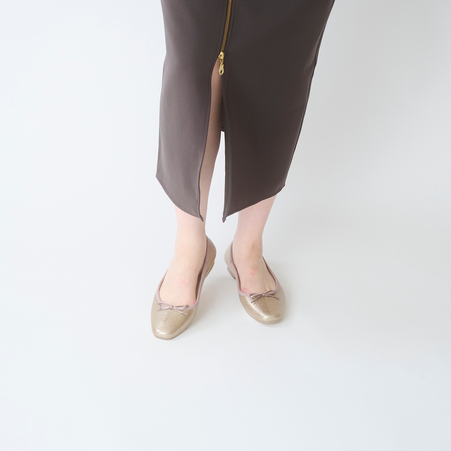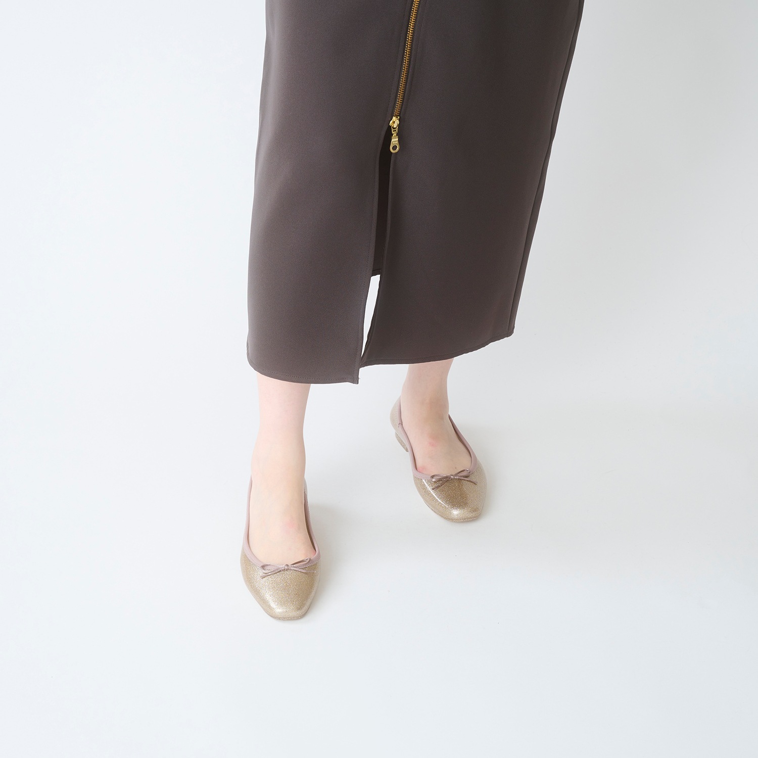 細かい粒子のグリッターをぎっしりと詰め込み、足元に繊細な輝きを纏える一足。グリッターは素材内部に閉じ込めており、剥がれ落ちる心配もありません。