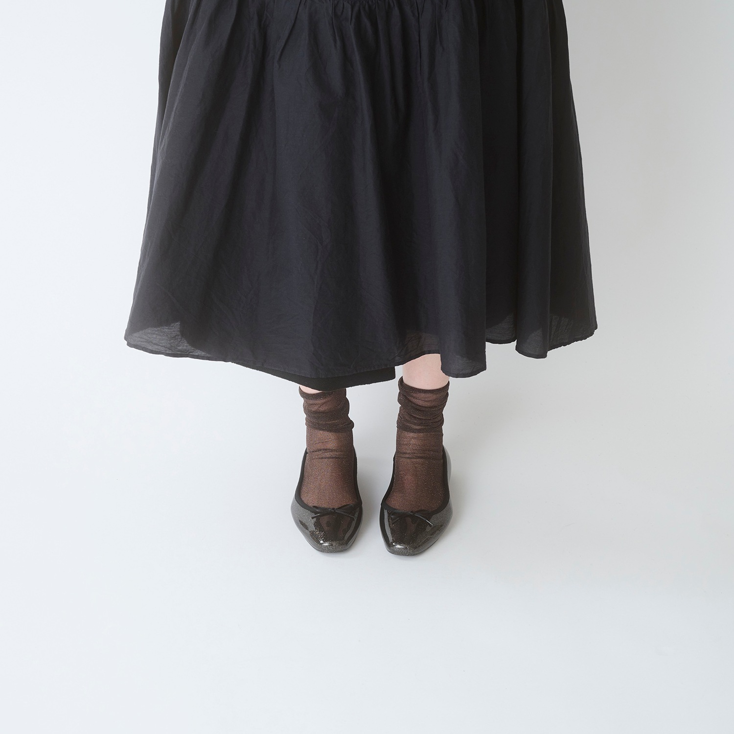 1足は持っていたいベーシックなバレエシューズ。優しくカーブしたスクエアトウは、履き心地と使い回しの良さでリピート買いも多数。TEMPERATEの定番モデルです。