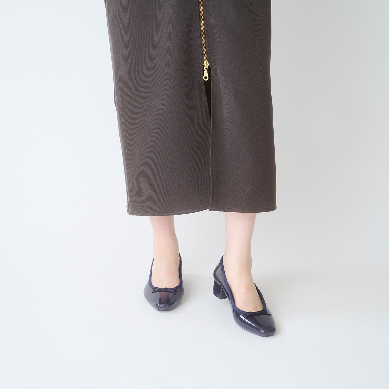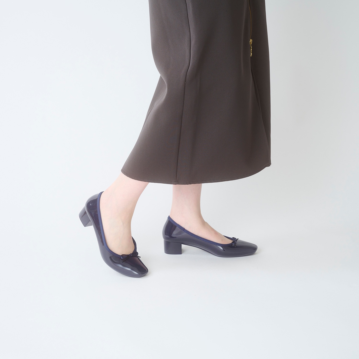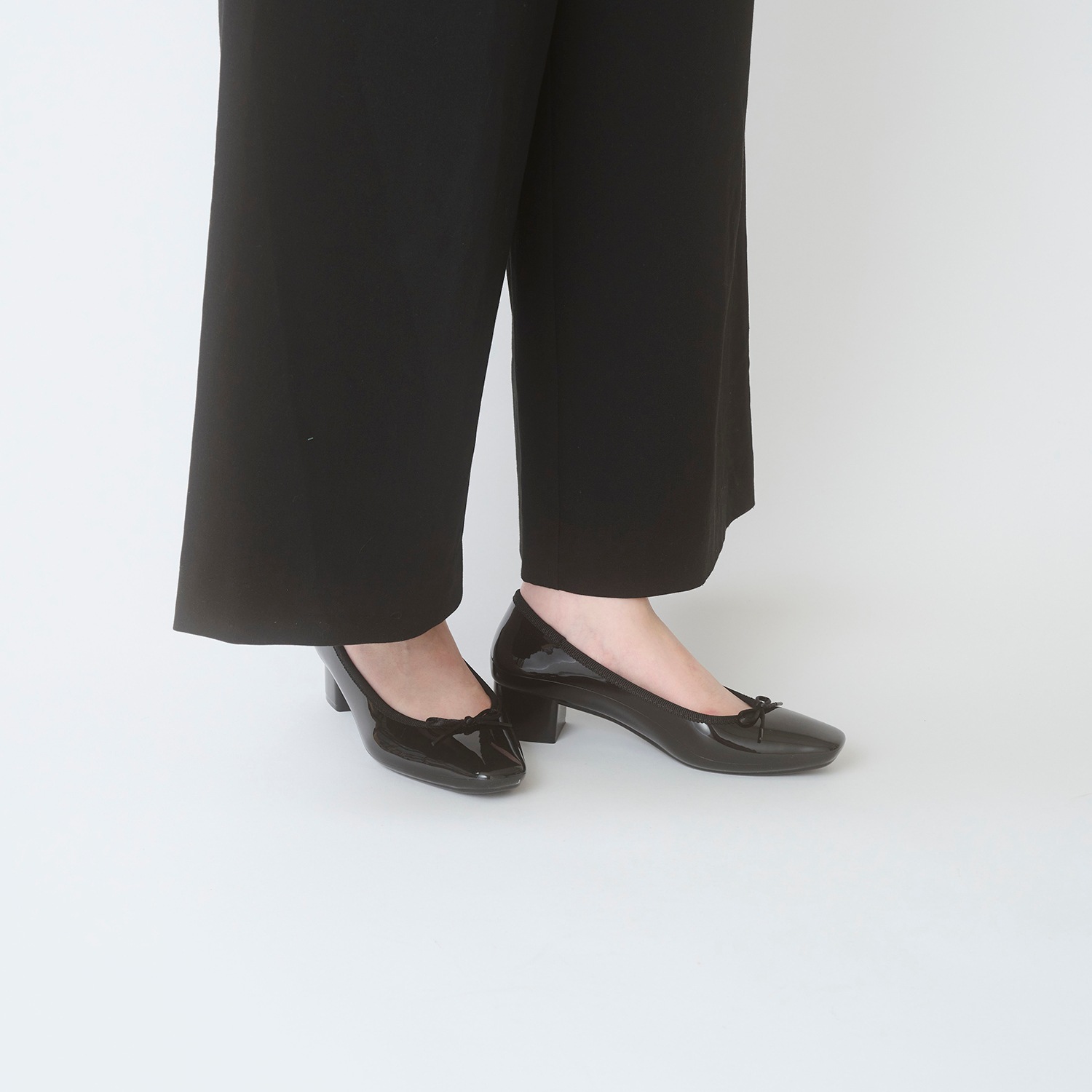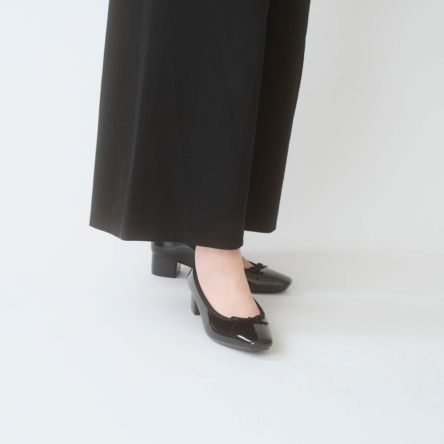 TEMPERATEが提案するヒールパンプス「MONA」は、飽きのこないベーシックなスクエアトウのバレエデザインと、歩きやすさを兼ね備えた3.5cmの太ヒールが魅力のモデルです。