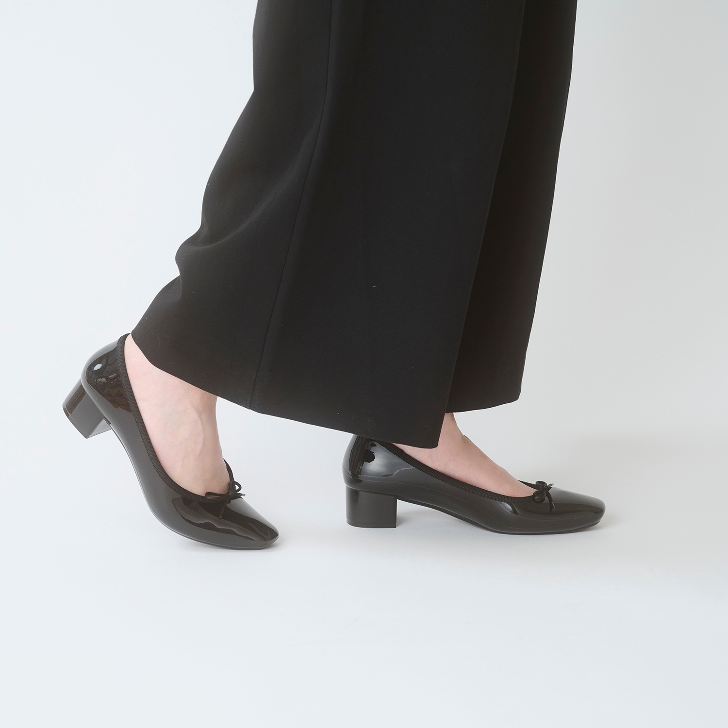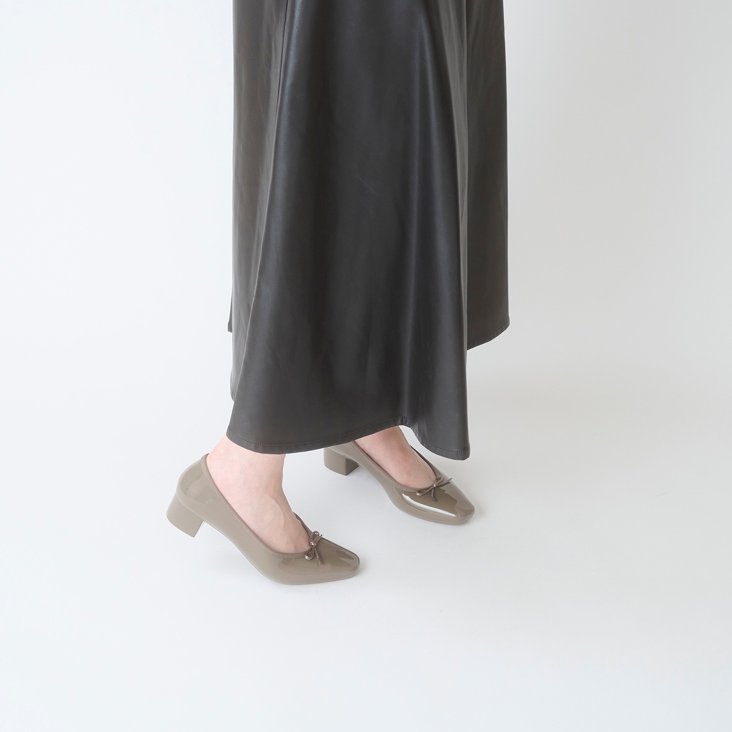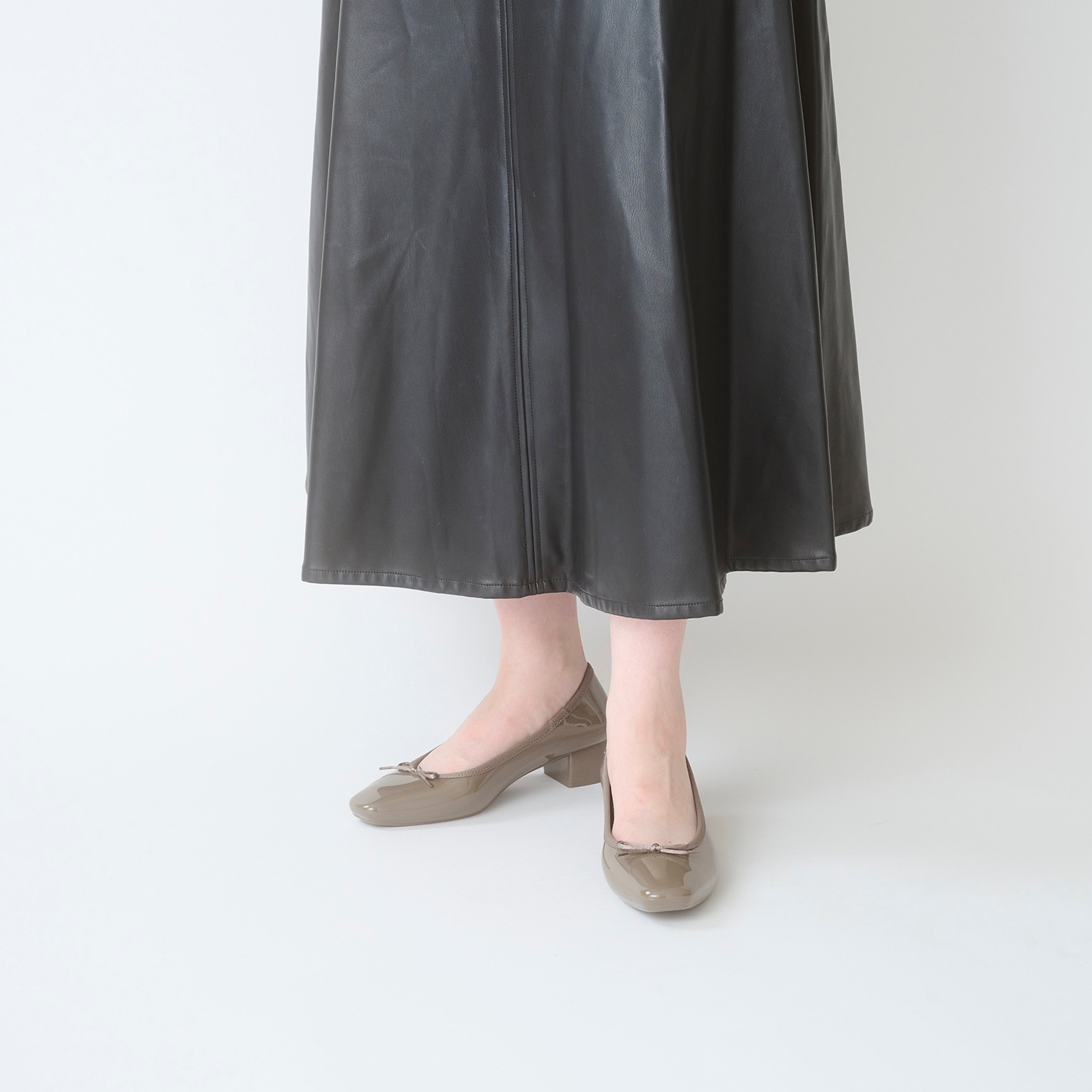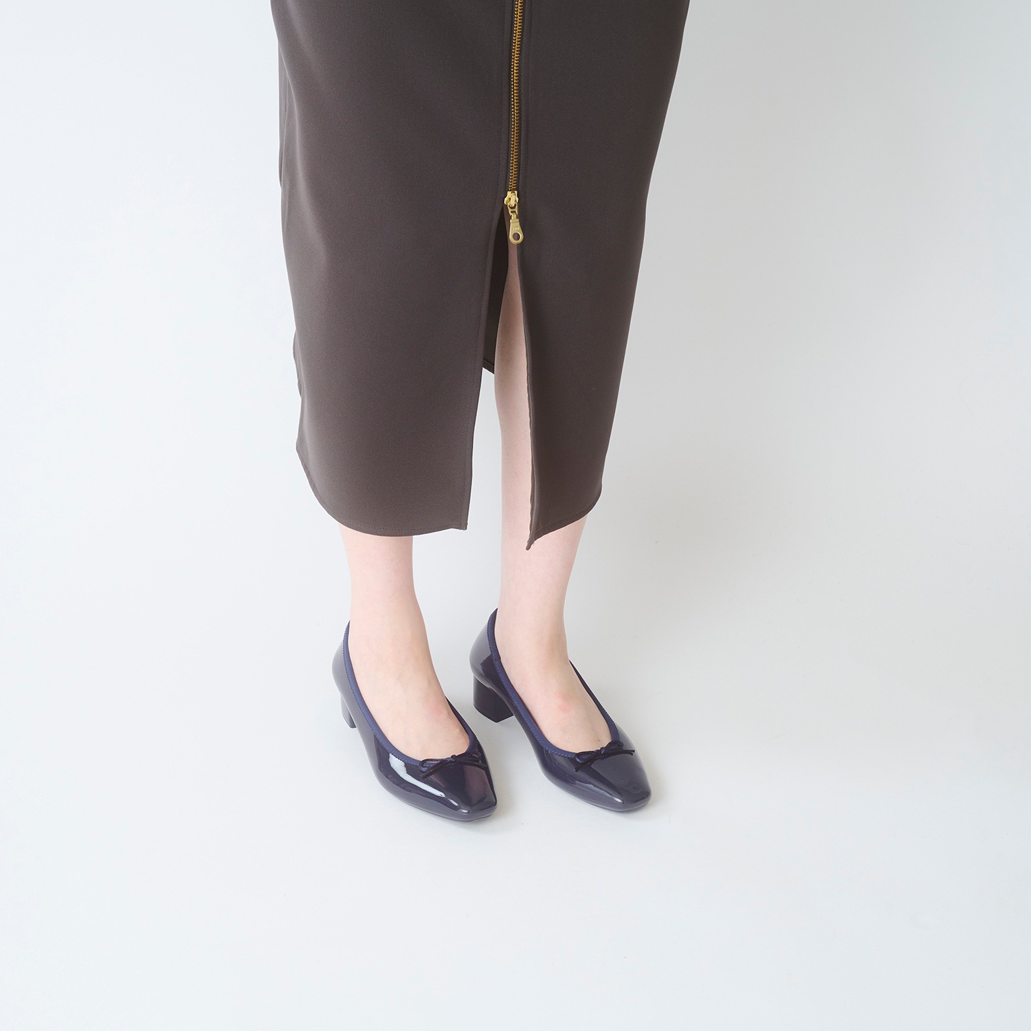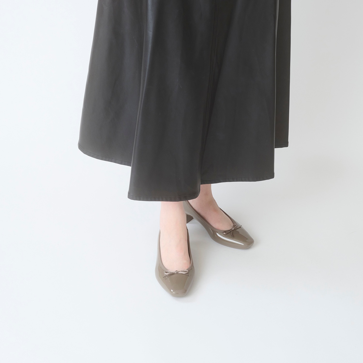 TEMPERATEが提案するヒールパンプス「MONA」は、飽きのこないベーシックなスクエアトウのバレエデザインと、歩きやすさを兼ね備えた3.5cmの太ヒールが魅力のモデルです。