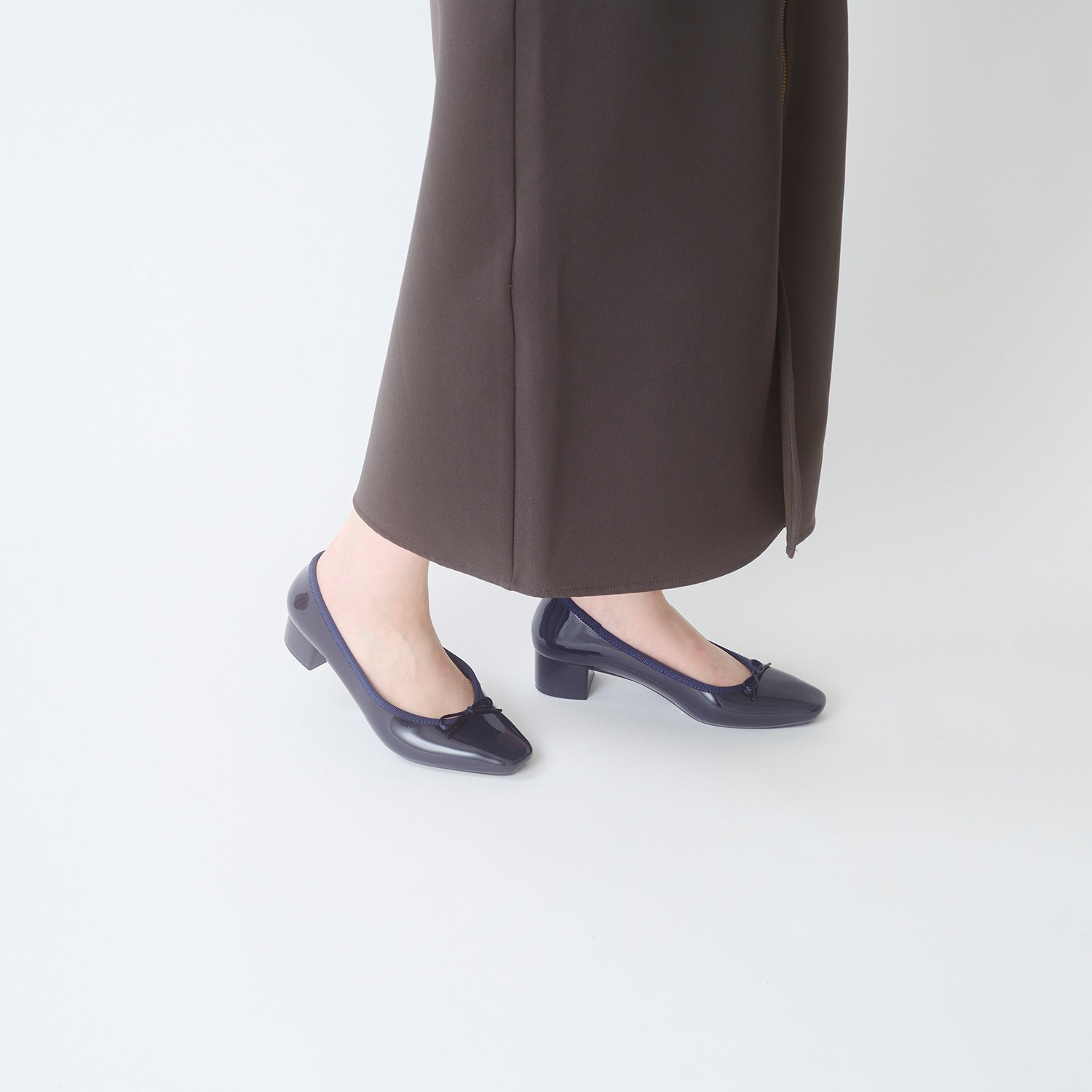 上品さと歩きやすさを両立した、ヒール付きレインバレエ。
