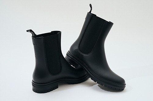 - 一体成型のインジェクションシューズ。継ぎ目がなく浸水しない完全防水。
