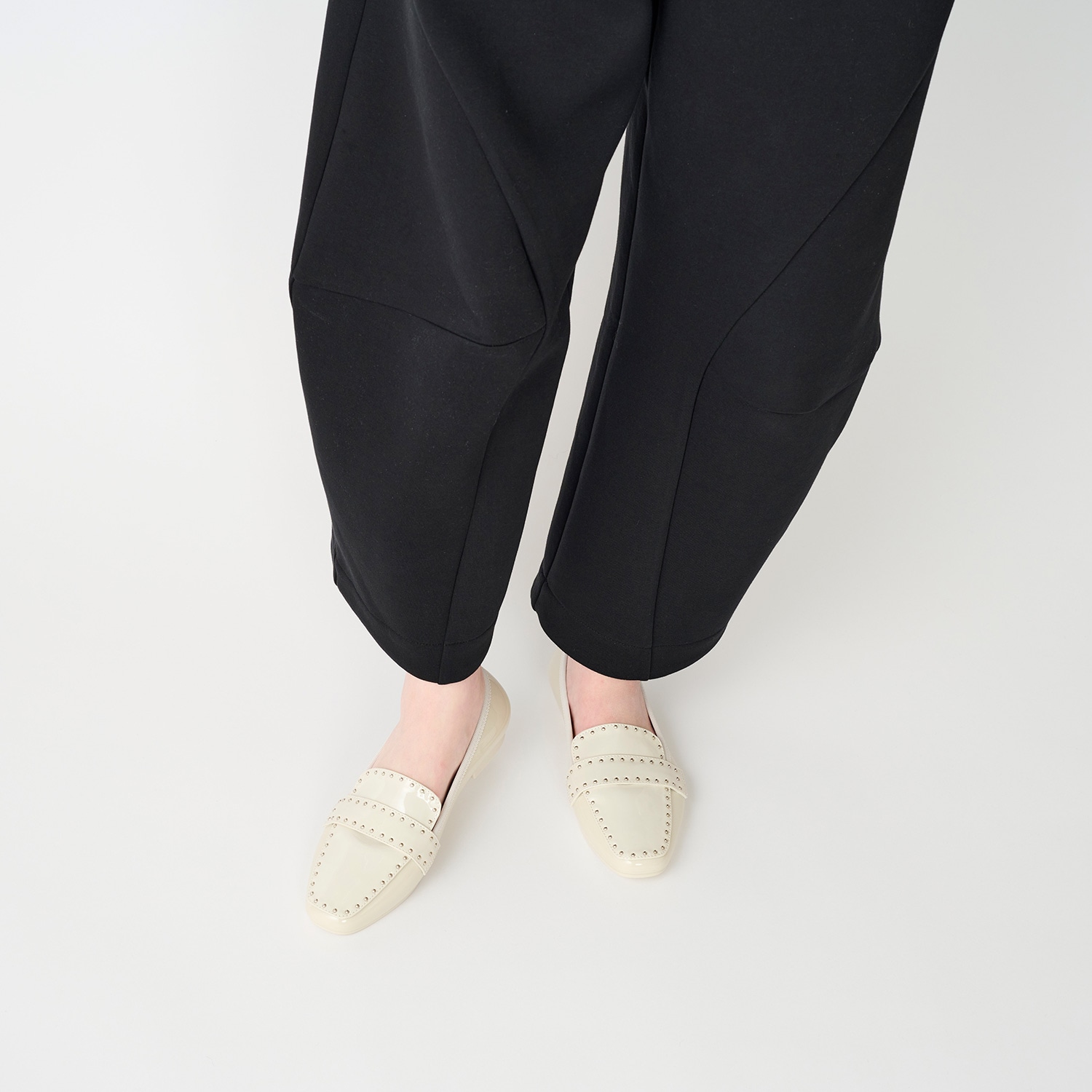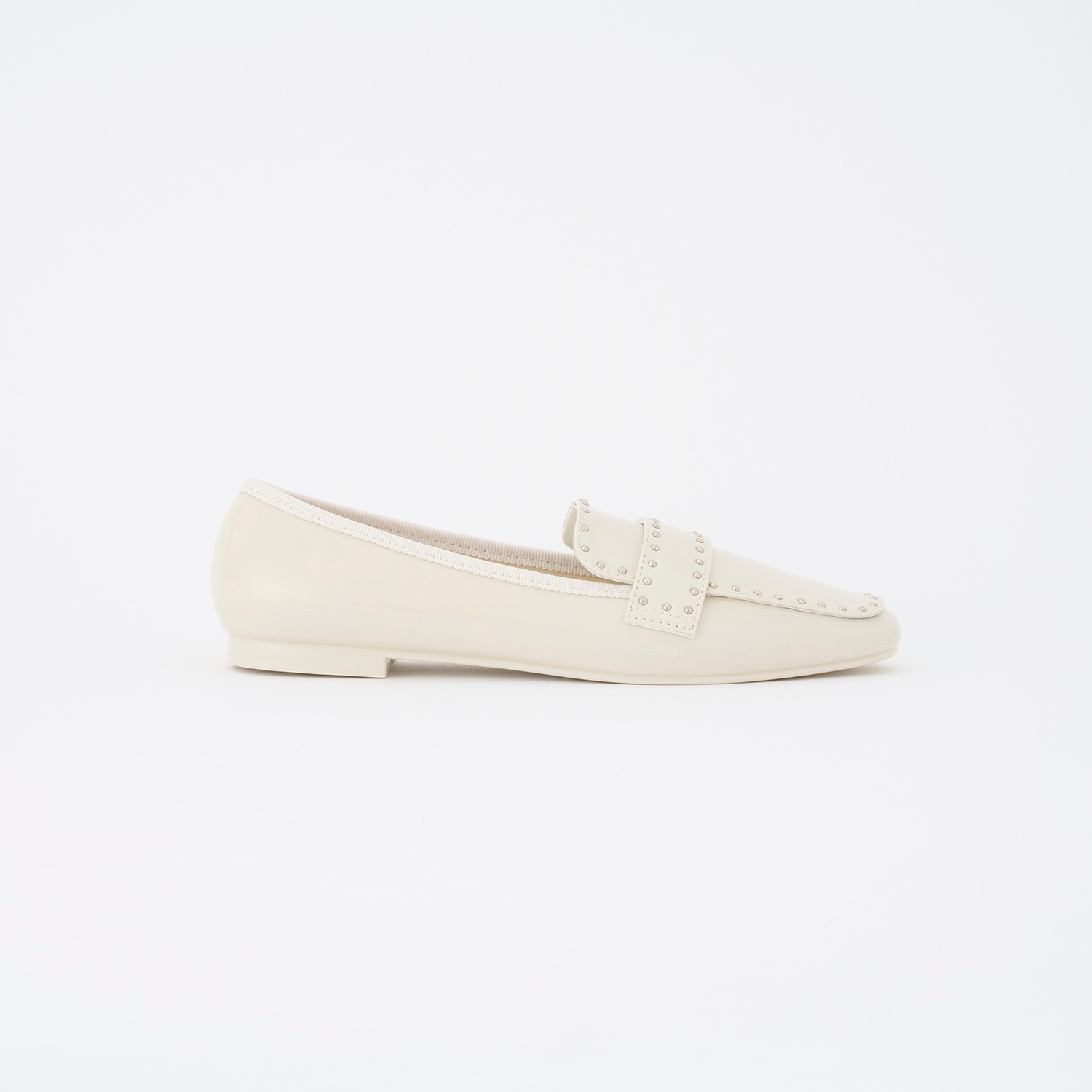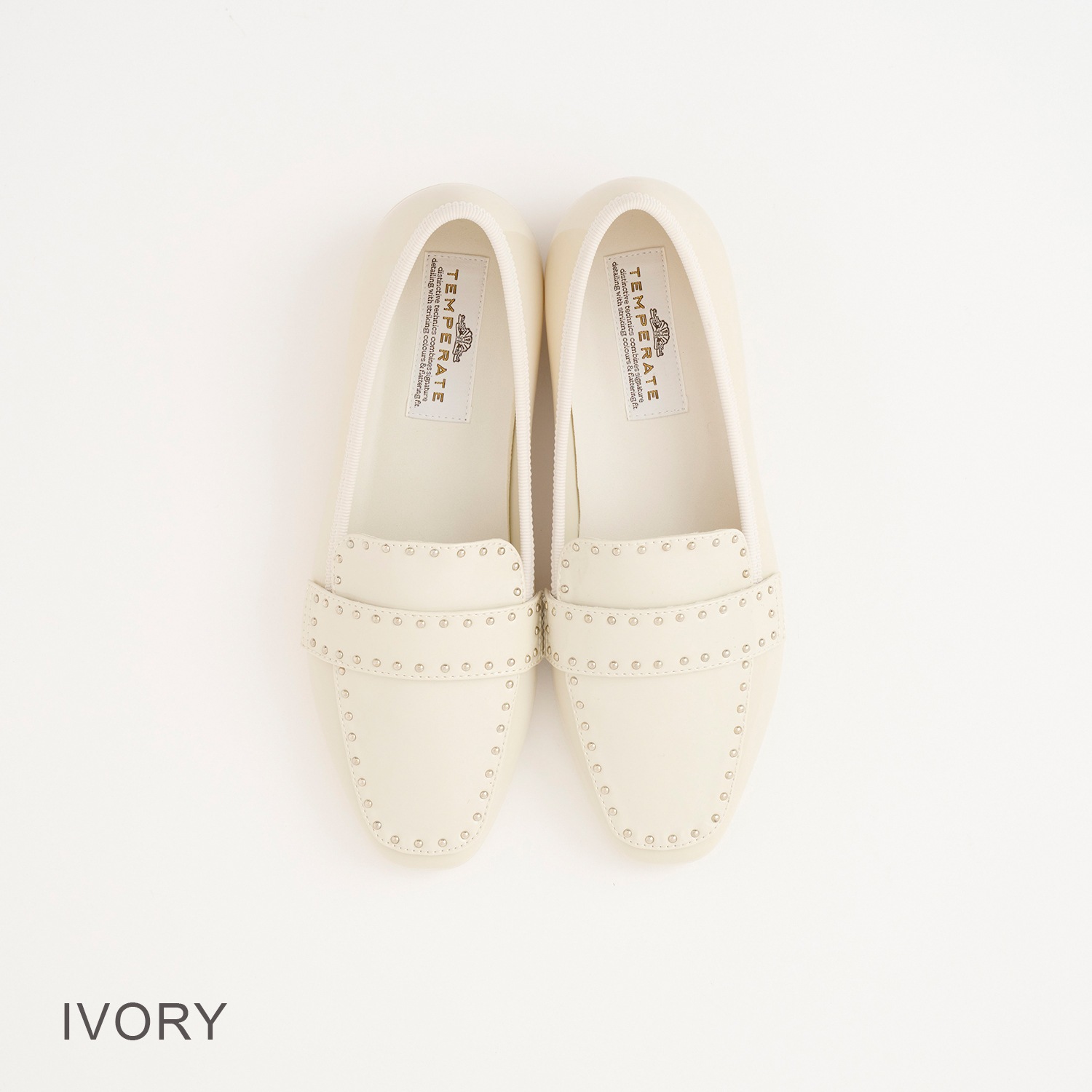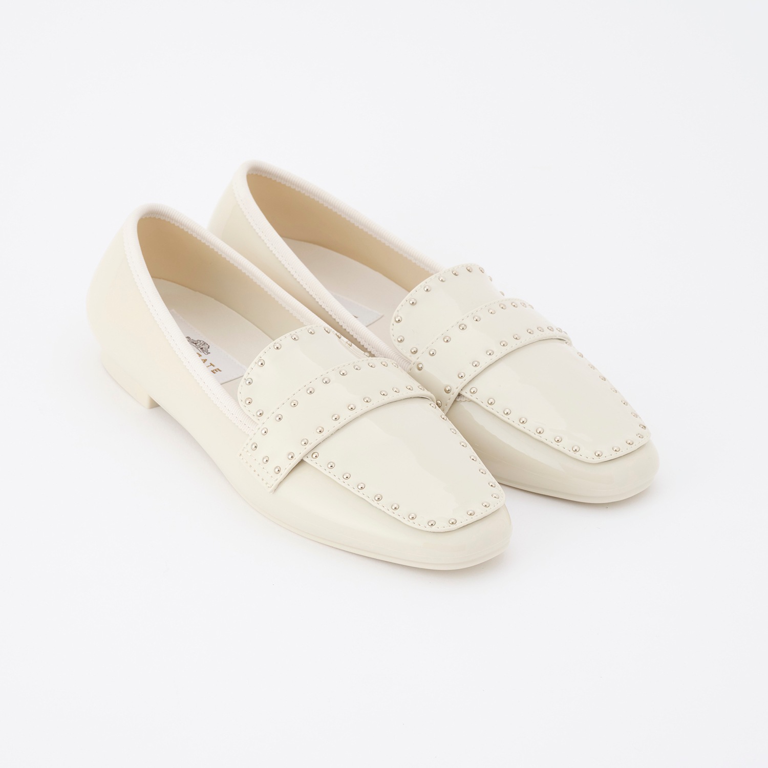 3mmの極小シルバースタッズを、エナメル調の合成皮革アッパーに贅沢に散りばめた「SLOAN(スローン)」。 控えめながらも品のある輝きで、コーディネートのアクセントにぴったりな一足です。