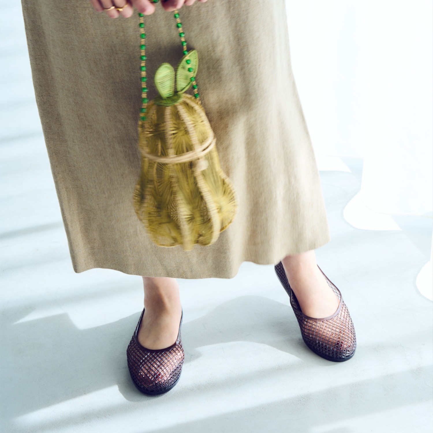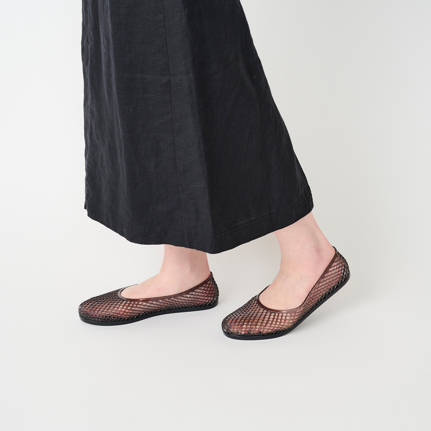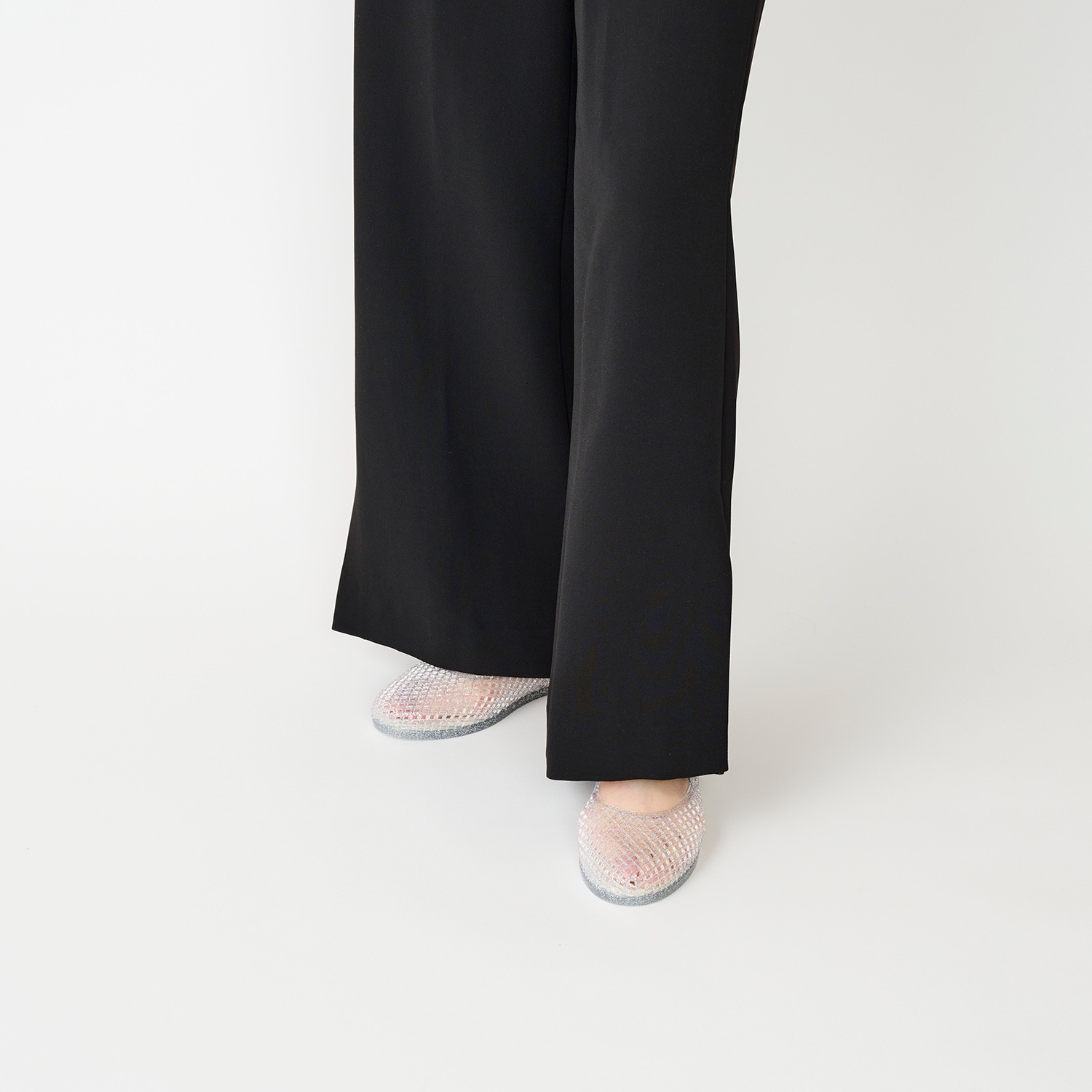 カラーは、モード感のあるBLACK、肌なじみの良いAMBER、クリアにシルバーラメが入った清涼感あふれるSILVERの3色展開。どんなコーディネートにも合わせやすく、スタイリングに抜け感をプラスしてくれる一足です。